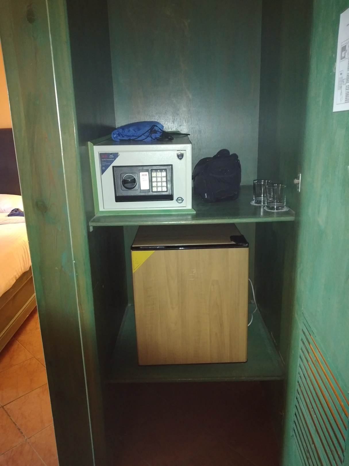 Safe und Kühlschrank