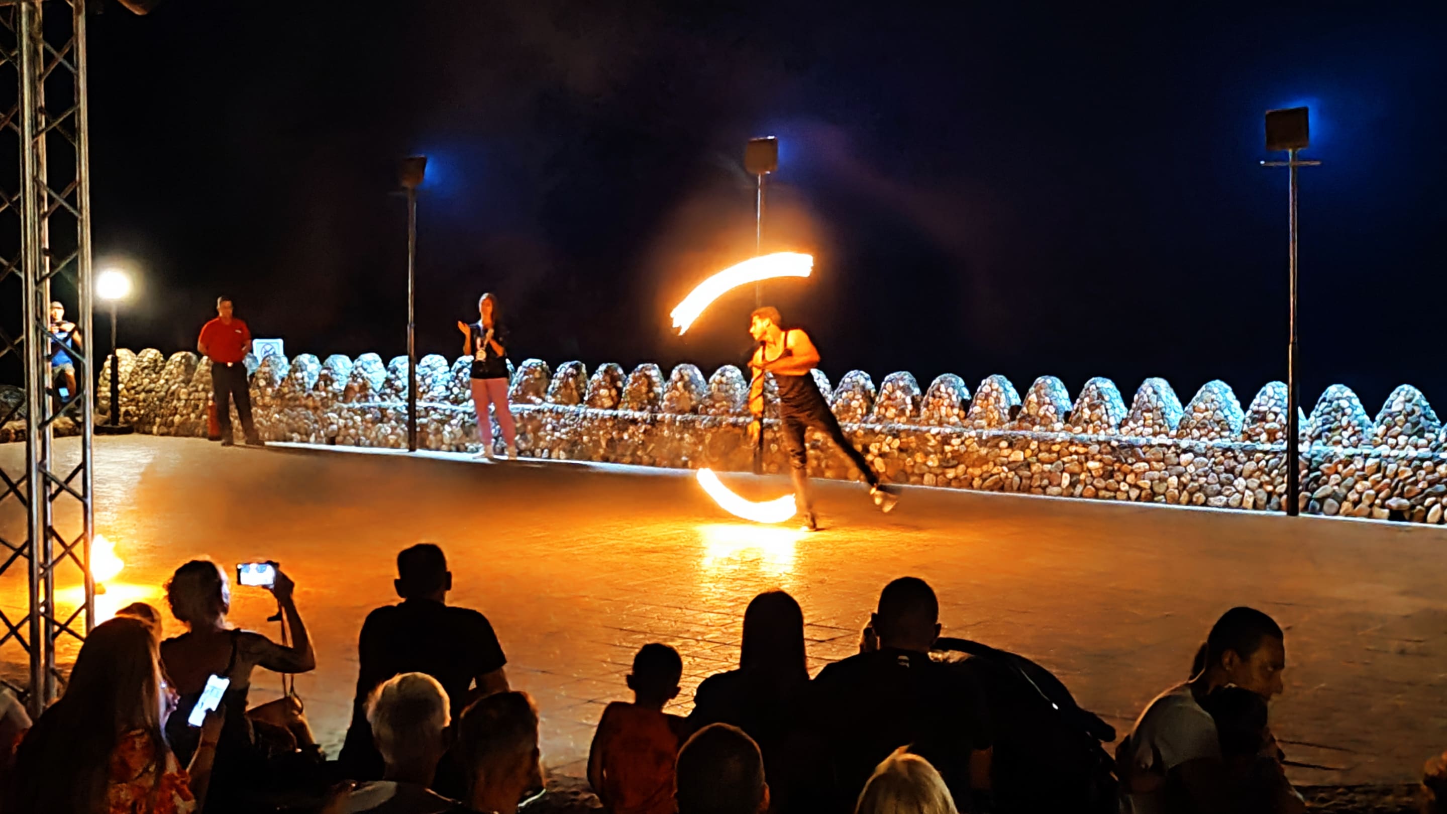 Feuershow am Abend der Beachparty