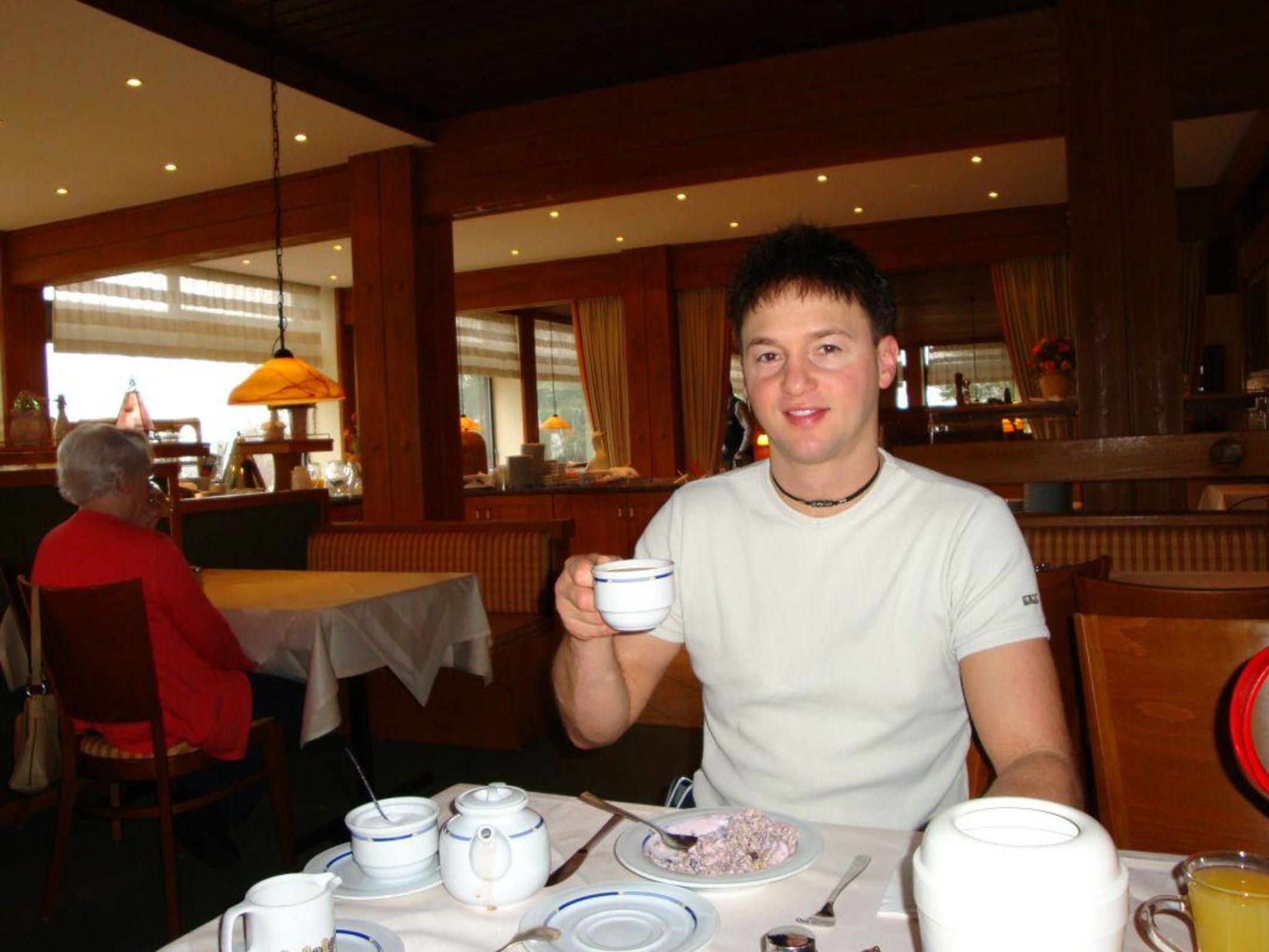 Ich beim Frühstücks-Kaffee