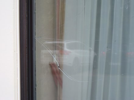 Defekte Scheibe neben dem Eingang