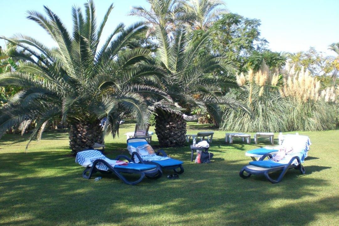 Wunderbare Liegewiesewer den Sand nicht möchte, liegt unter dem Schatten der Palmen oder Bananenstauden auf der grünen Wiese