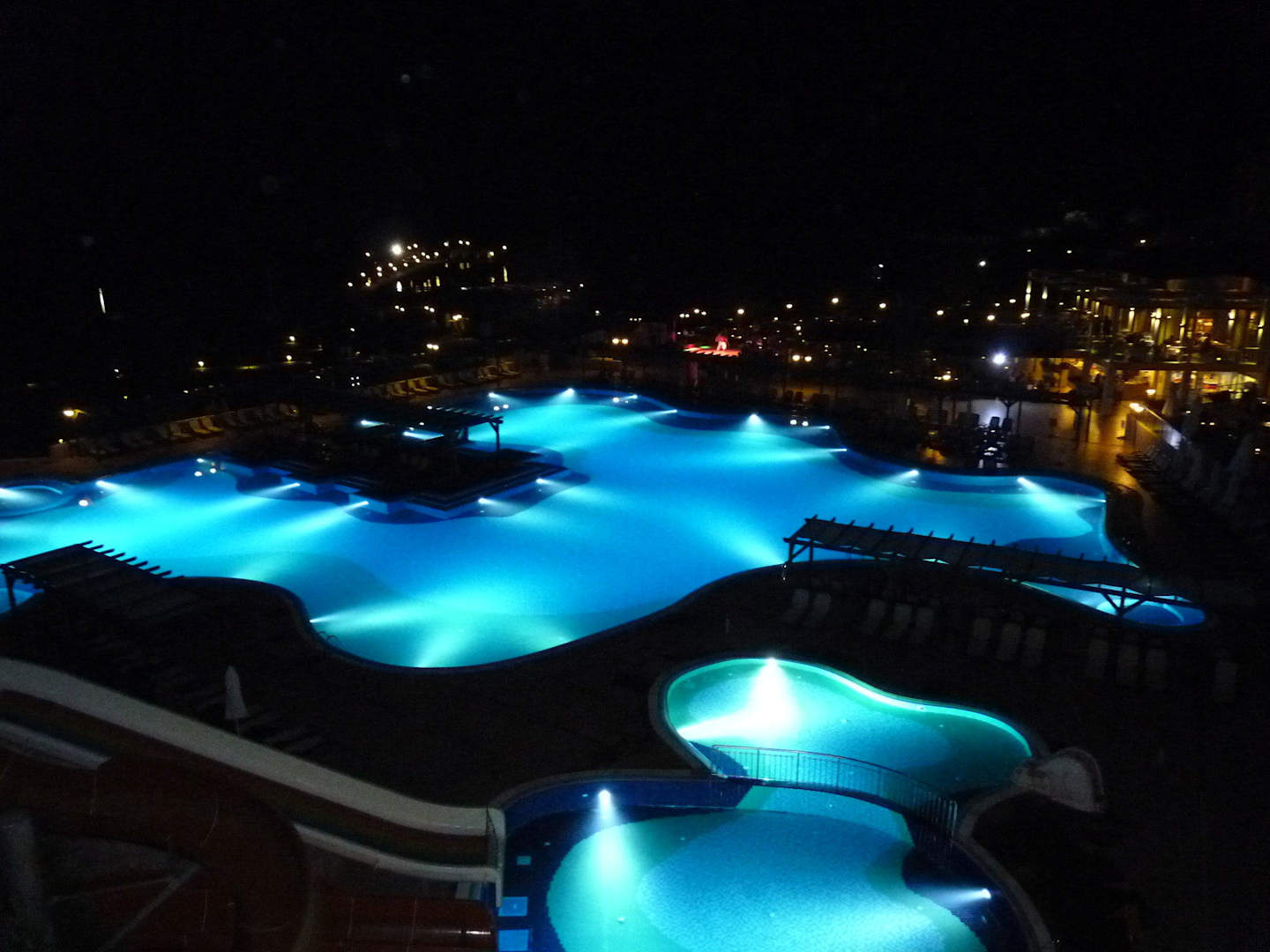 Widok na baseny nocą