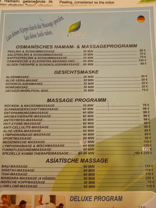 Preisliste Massage