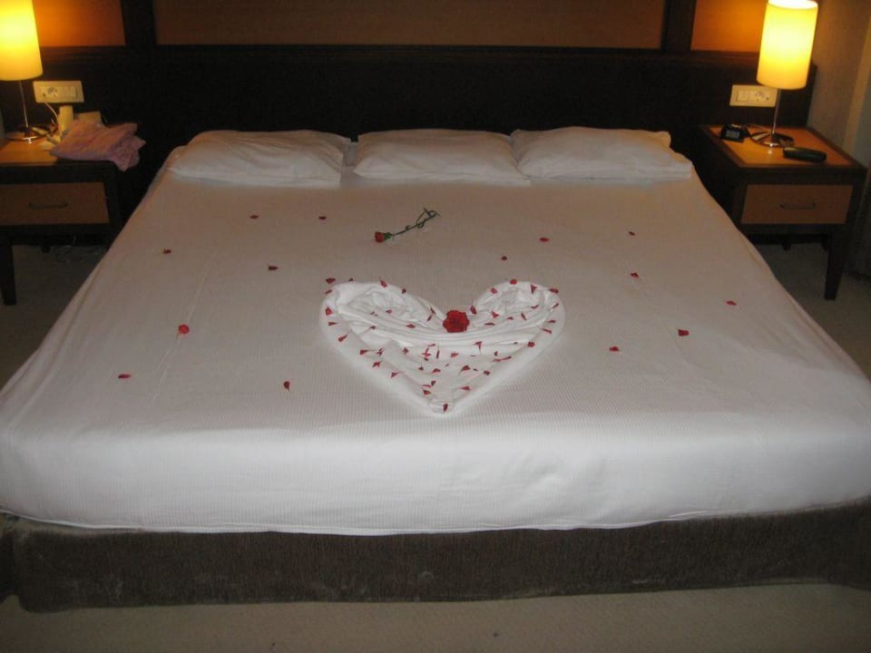 Schön dekoriertes Bett