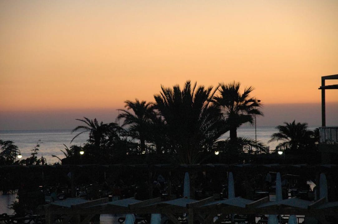 Blick von Terrasse auf Garten und Meer