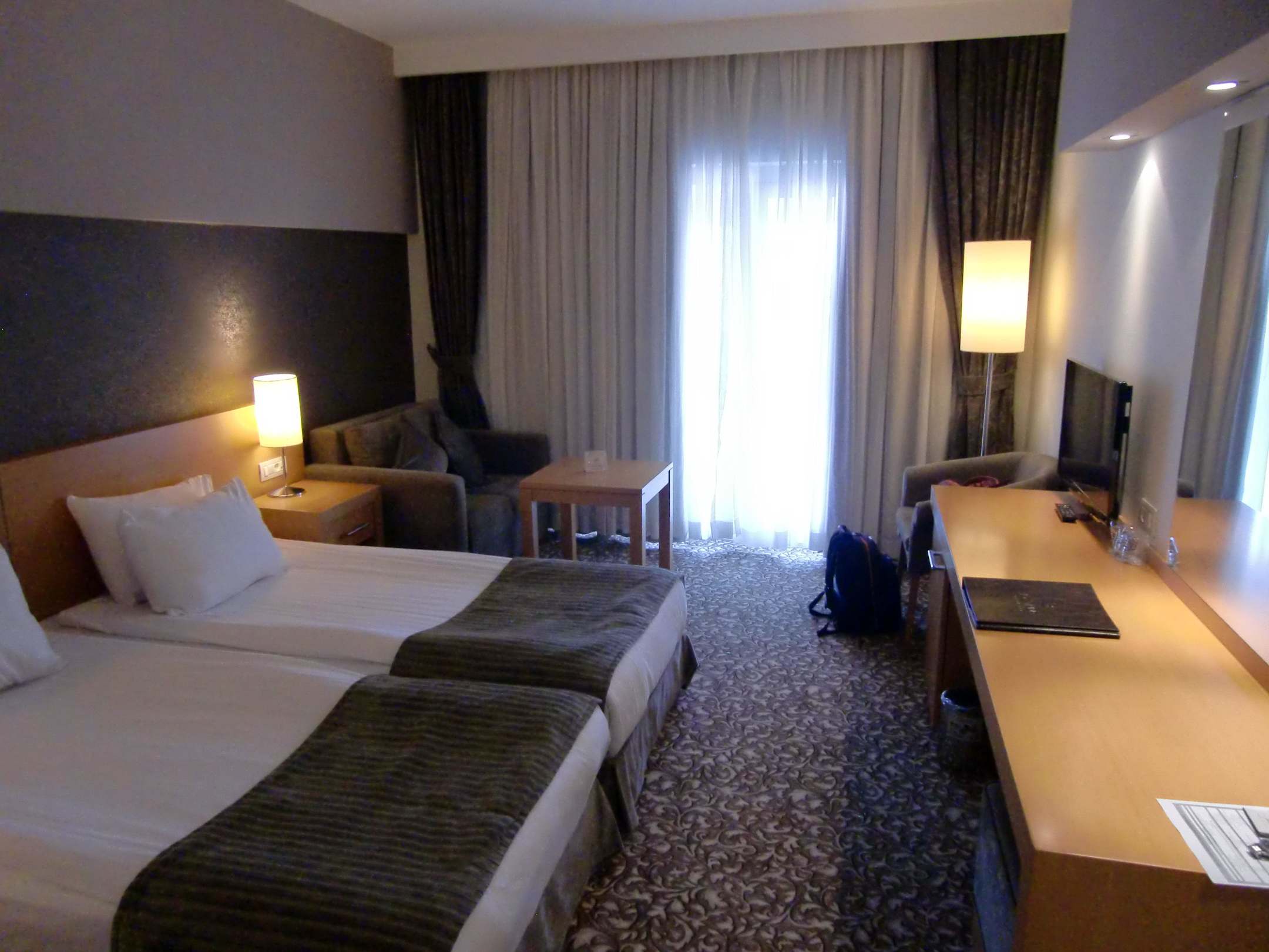 2 breite Einzelbetten, Couch mit Tisch + Sessel