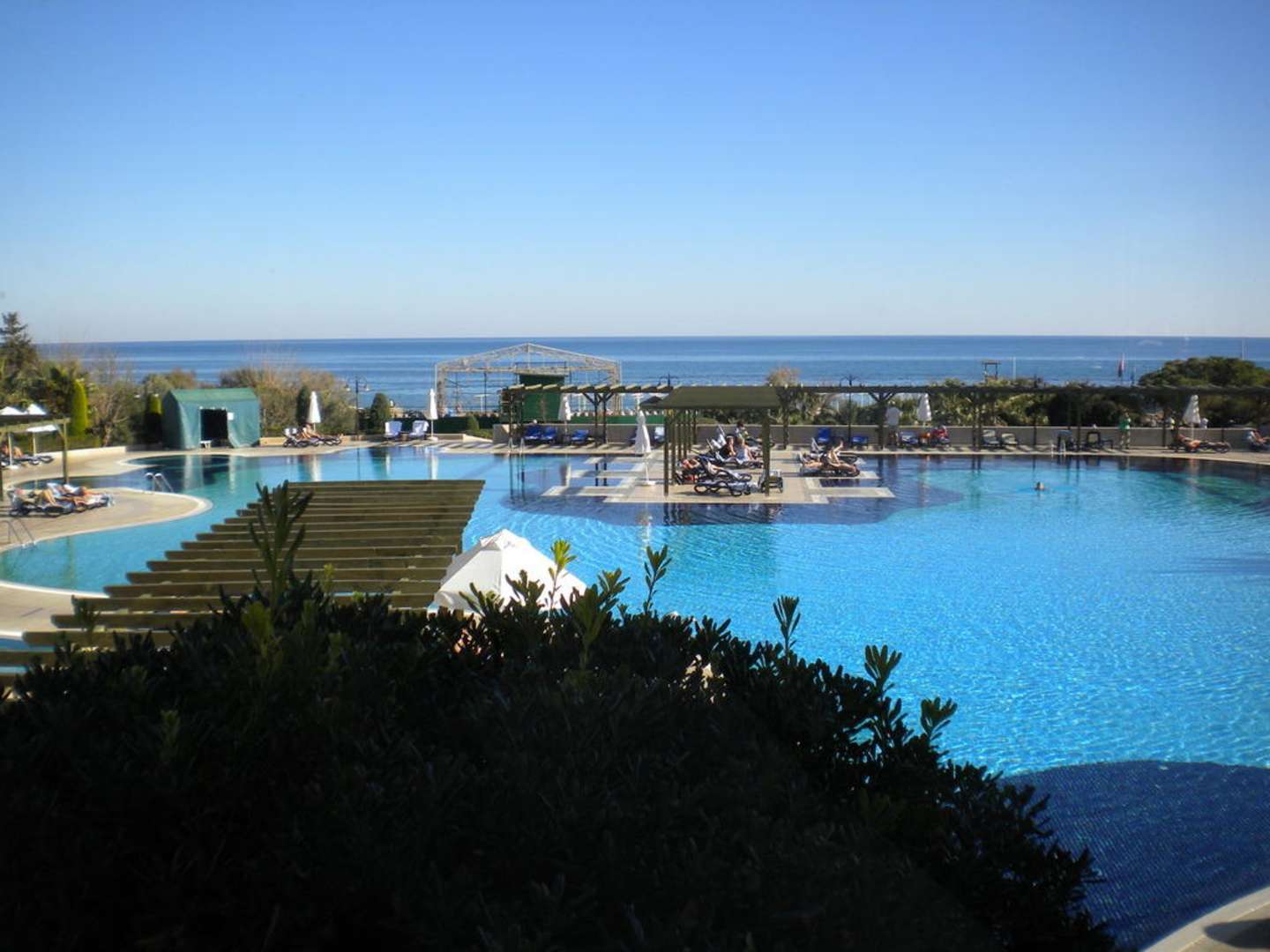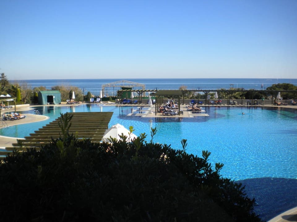 Poolanlage mit Meer im Hintergrund