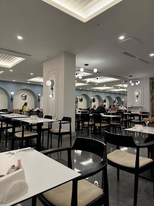 Man versucht modern zu sein, aber es passt alles nicht zusammen. Denn die Stühle sind alles andere als modern, man könnte denken sie werden nie geputzt