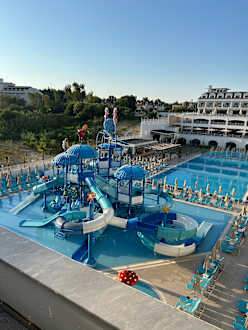 Blick auf den Wasserpark und den Pool