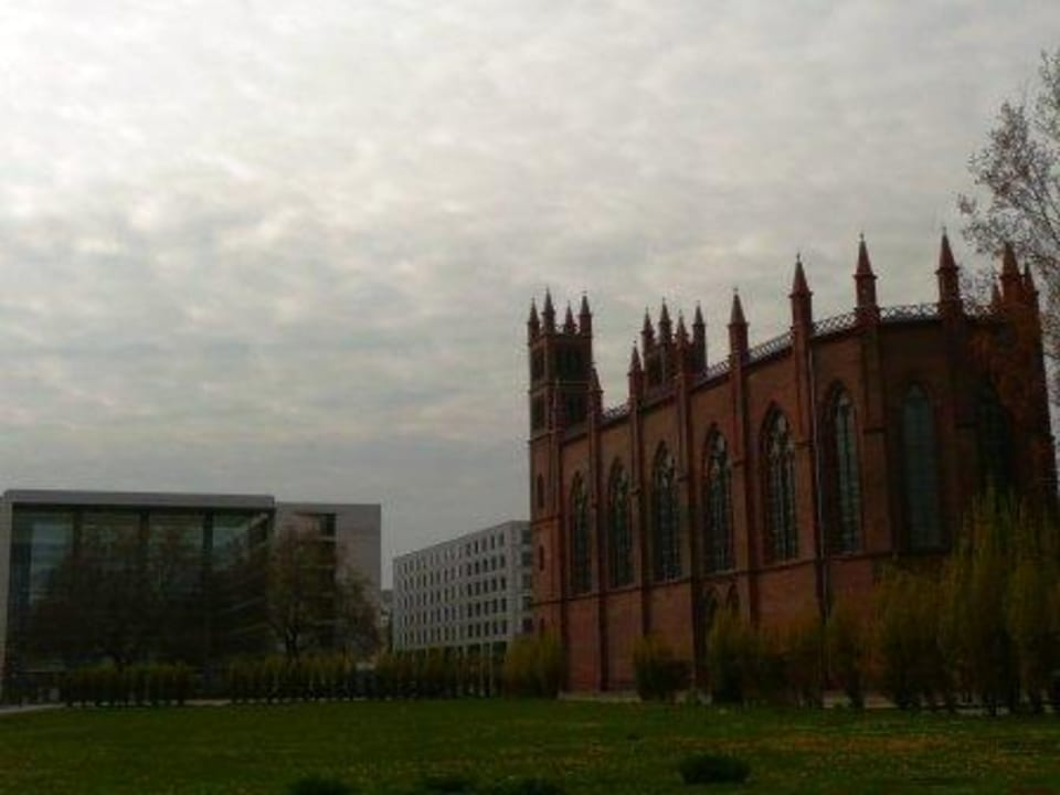 Rechts vom Arcotel die Kirche, links das auswärtige Amt.