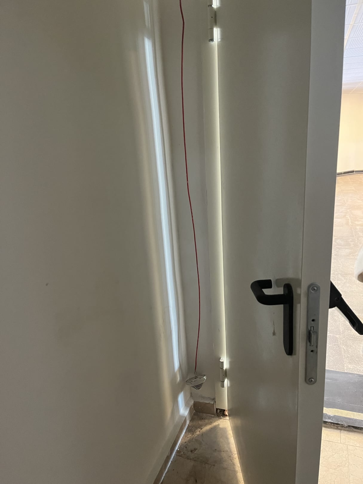 Treppenhaus, runterhängender Feuermelder.