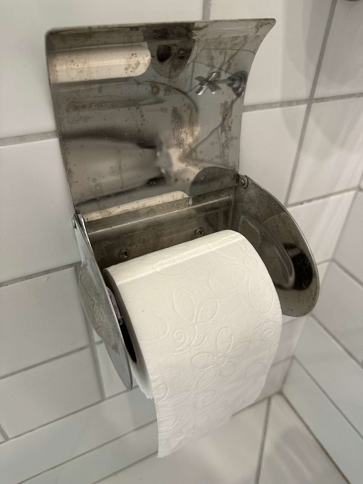 Verdreckter WC Rollenhalter