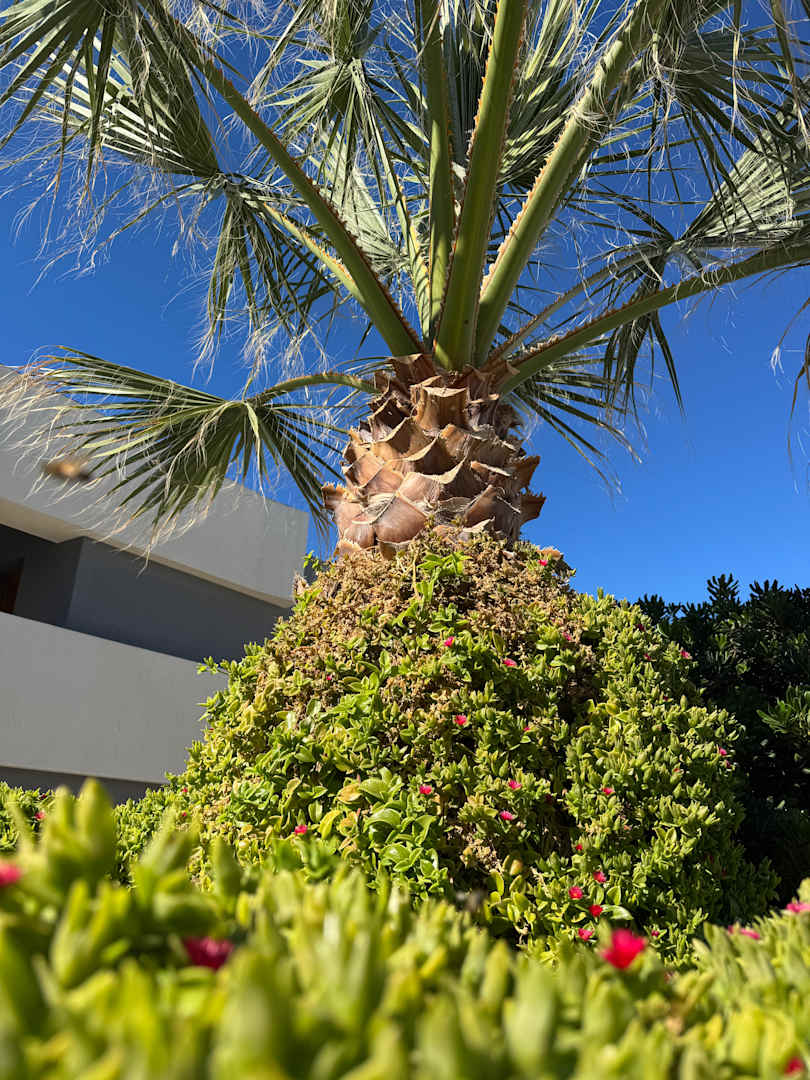 Palme an der Rutschenlandschaft für Kids im Oktober