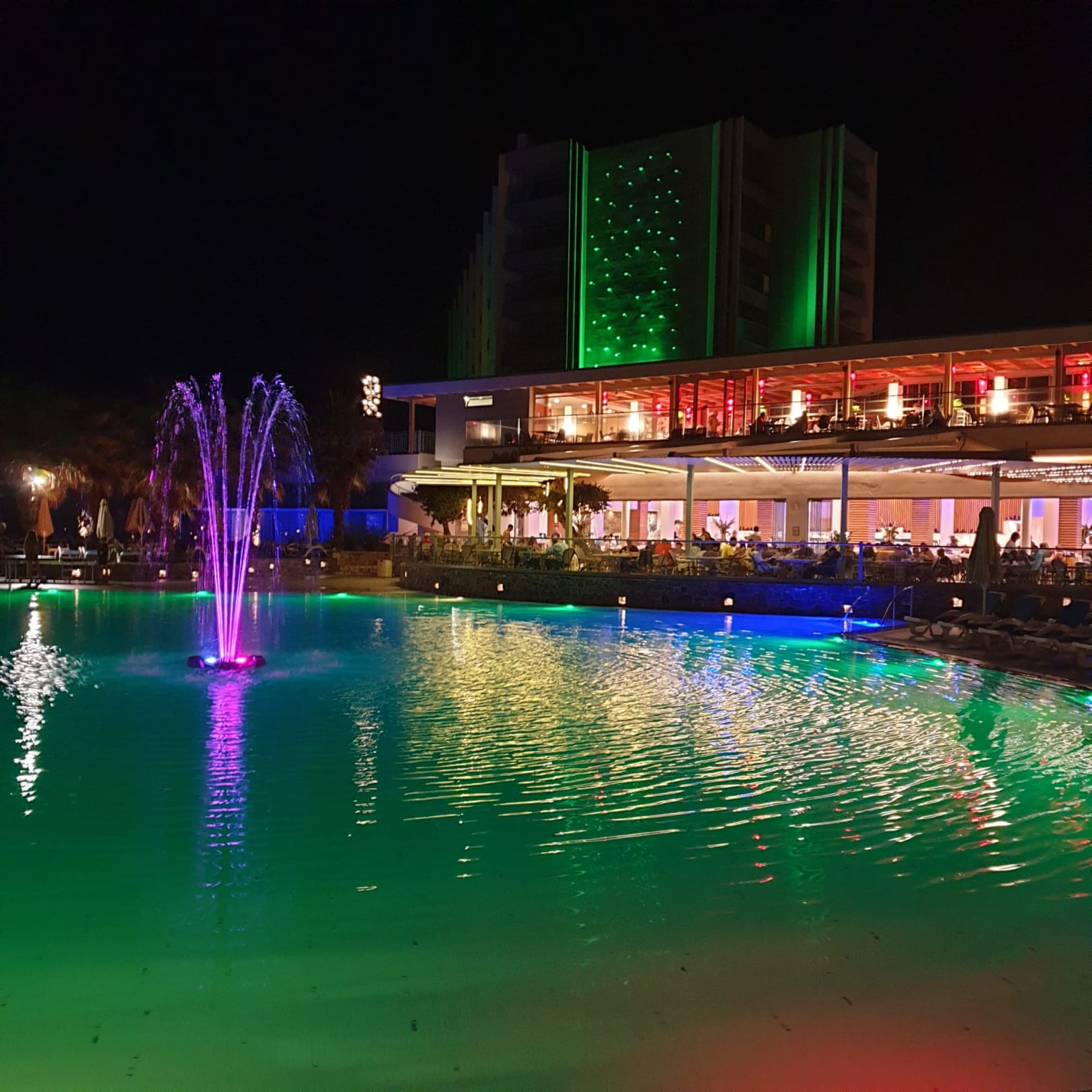 Hauptpool sowie Asiatisches-und Hauptrestaurant am Abend