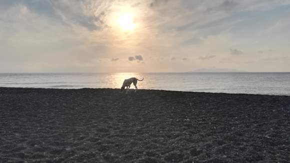 Morgens am Strand, unsere Treue Begleitung wartet schon auf uns