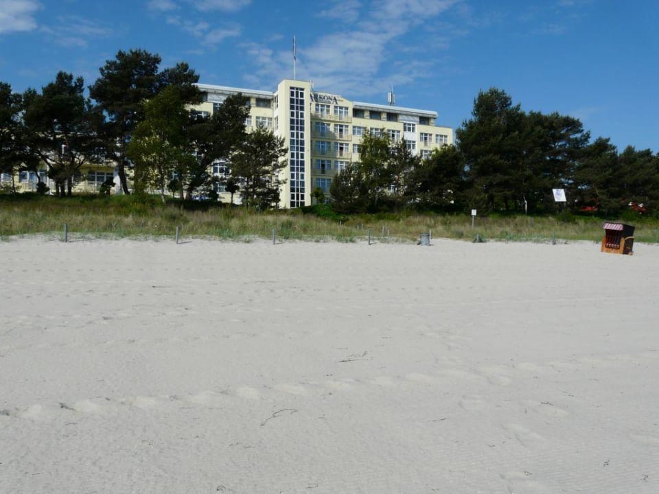 Arkona StrandhotelHotelansicht vom Strand aus gesehen, zwischen Strand und Hotel befindet sich nur die Strandpromenade