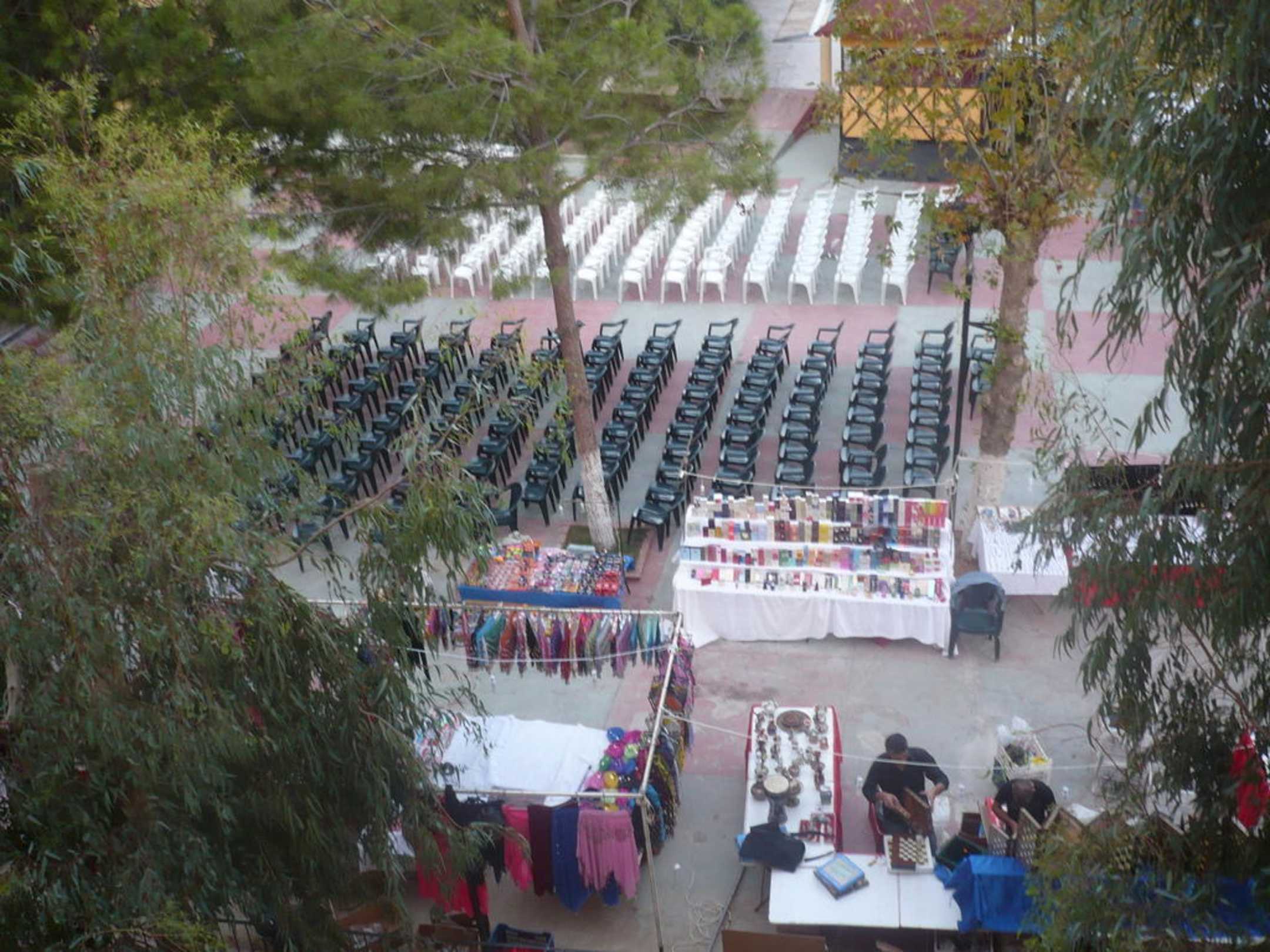 Výhled z balkonuvýhled z balkonu - židle na animační program a tržnice