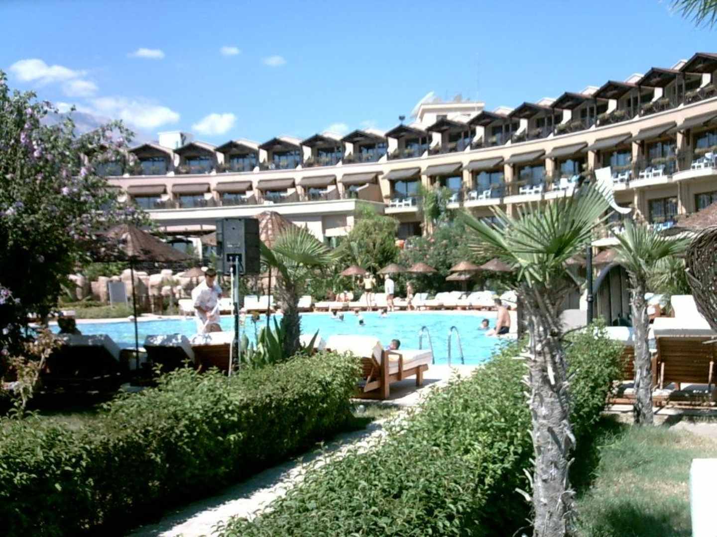 Hinteransicht des Hotels, Pool und Garten