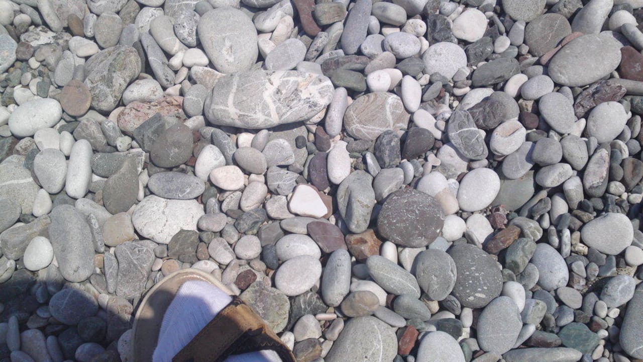 Dieser "Strand" besteht nicht aus Sand oder Kies, sondern bis kinderkopfgroßem Geröll.