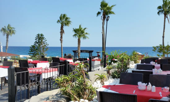 Die Restaurantterrase mit Blick auf's Meer.