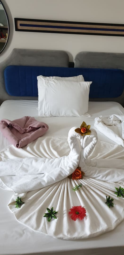 Da,kommt man vom Frühstück zurück ins Zimmer und es wird gleich ein Lächeln ins Gesicht gezaubert. Jeden Tag ein anderes Model.sehr schön sehr...