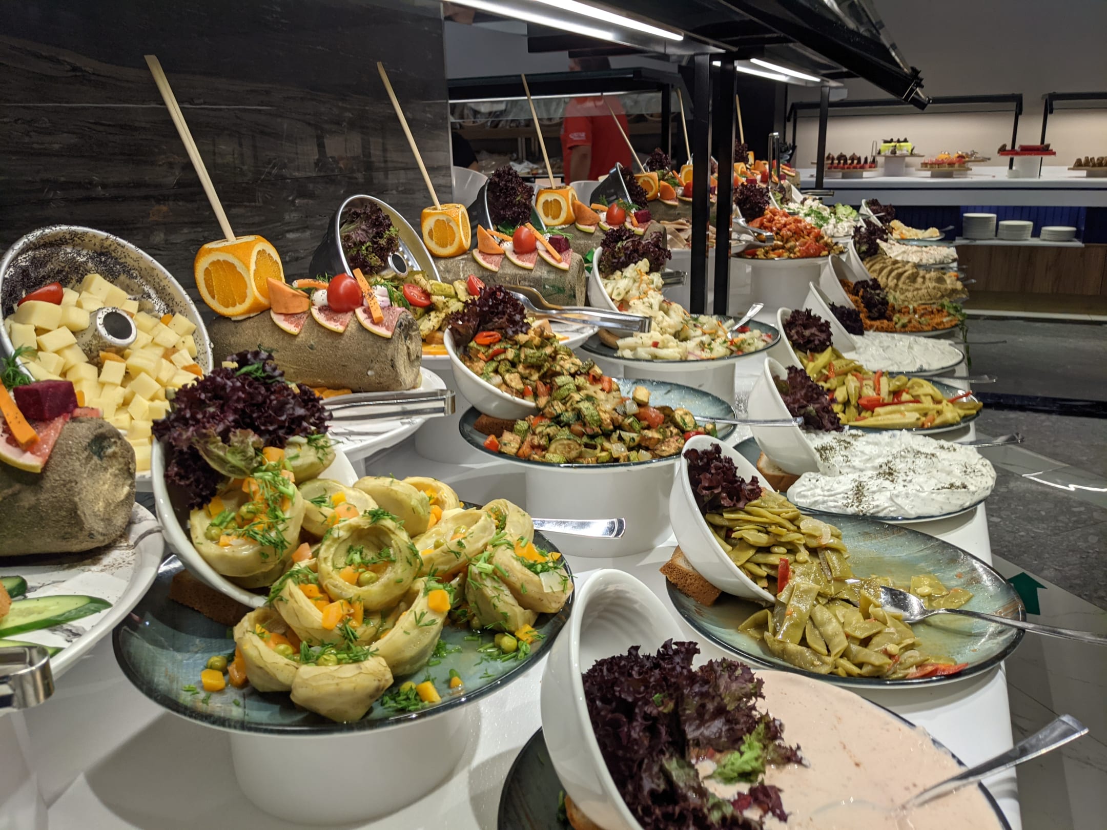 So viele Salate...alles frisch. Und kunstvoll dekoriert.