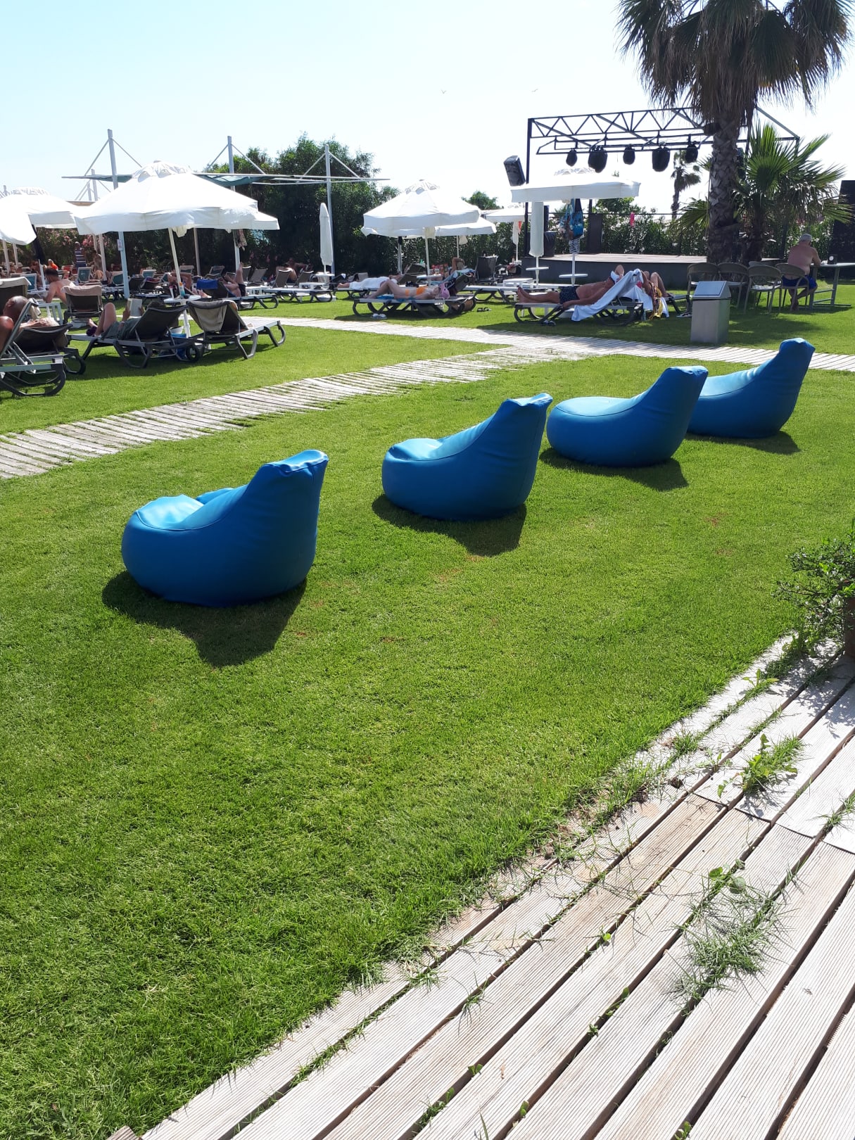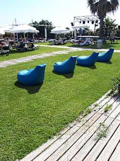 Am Strand genügend Liegen. Im Sand oder auf Grünfläche.