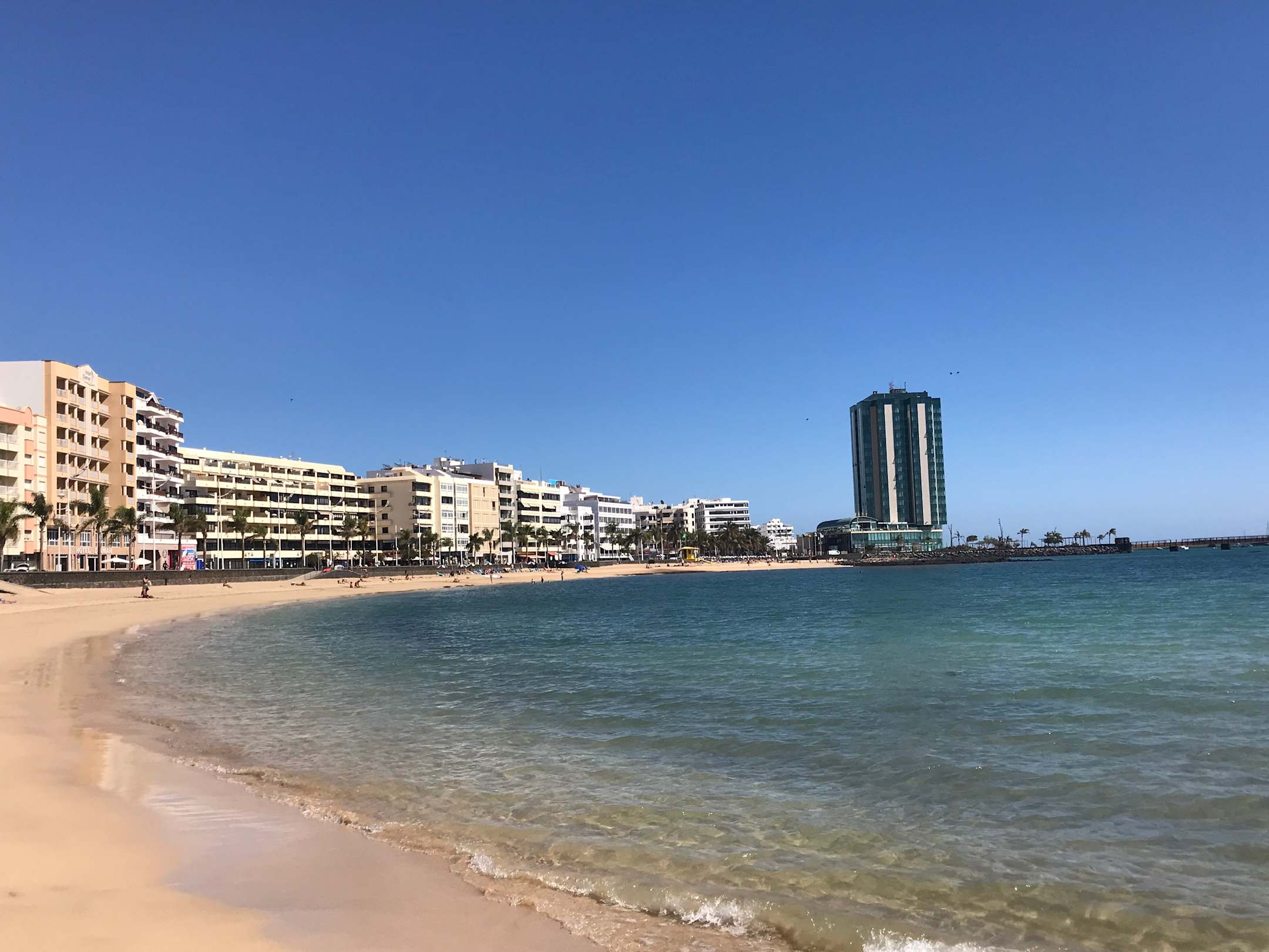 Am Strand, Blick aufs Hotel