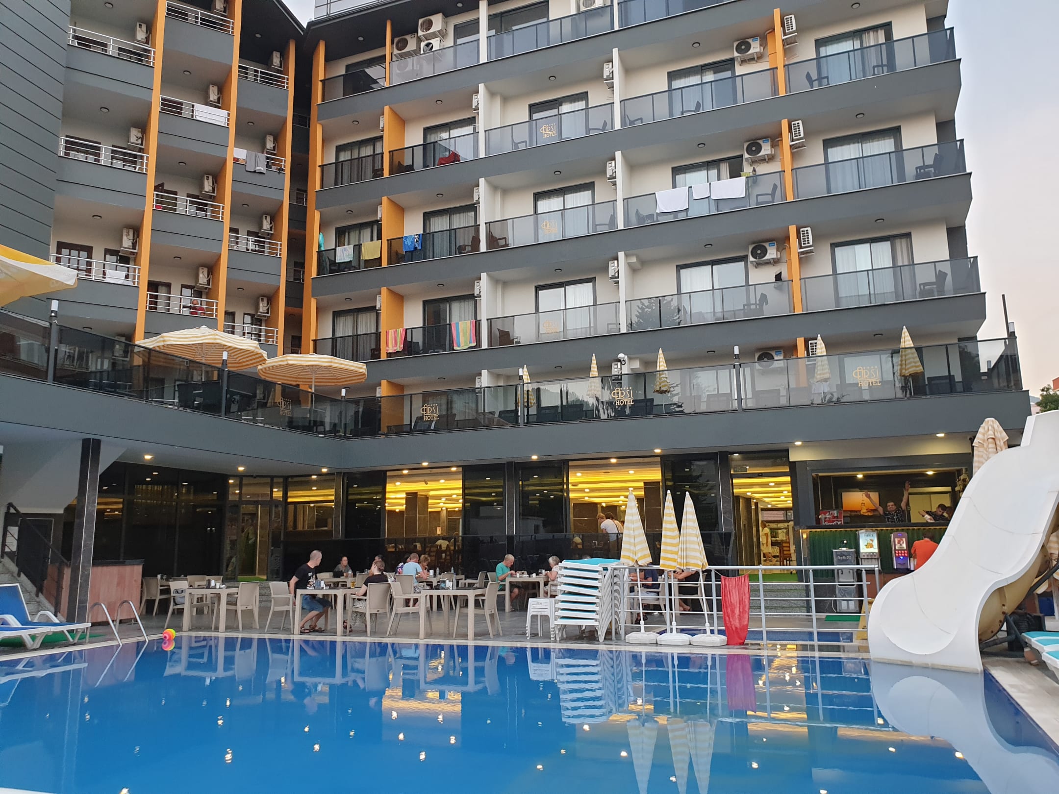 Lovely hotel with a water slide.