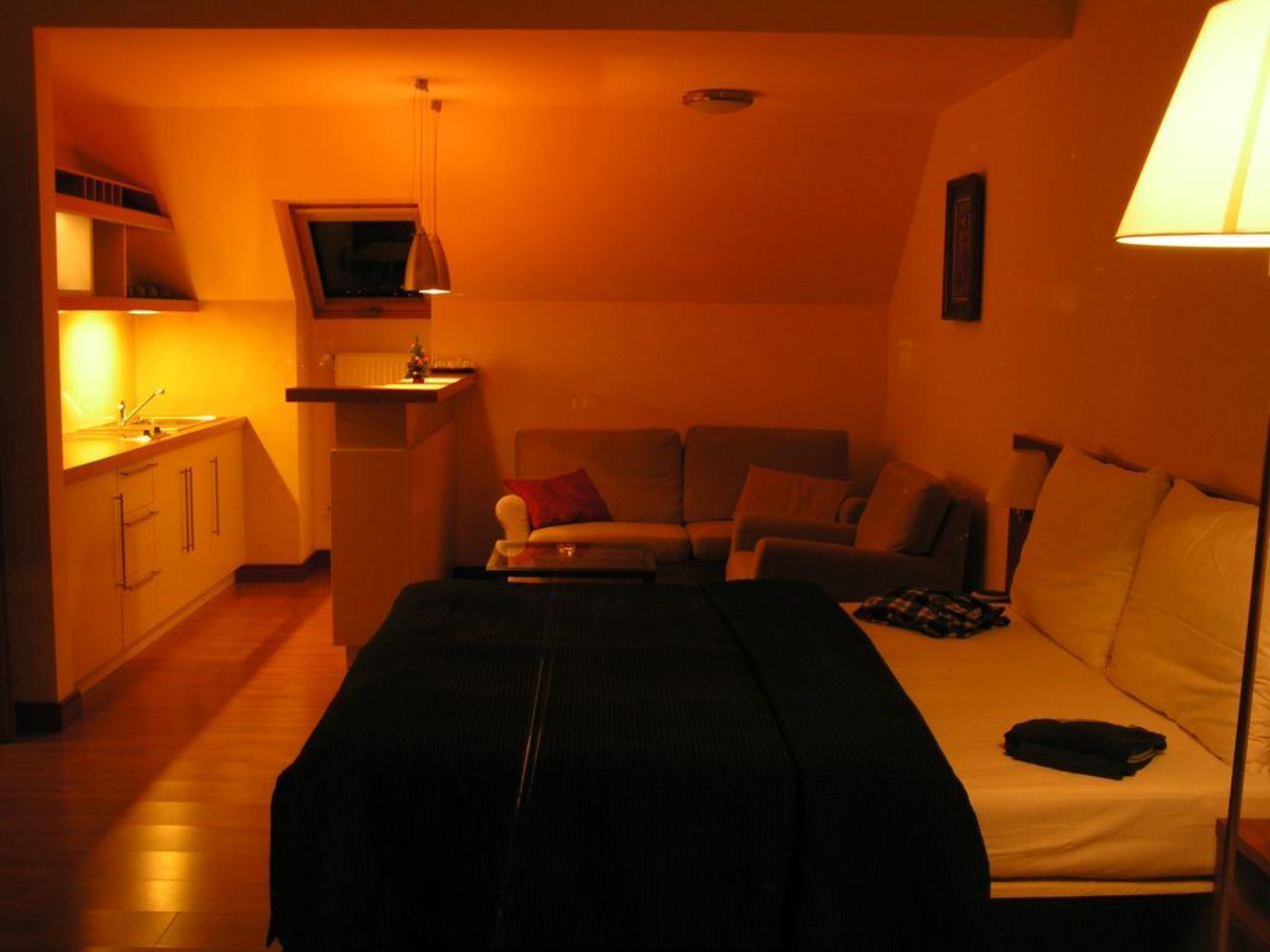 Suite mit Doppelbett, Couchecke, Kochnische, Barthresen, Kleiderschrank, Schreibtisch inkl. TV+Safe
