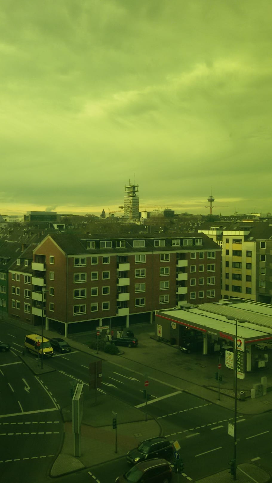 Zimmerausblick Straßenseite durch getönte Scheibe