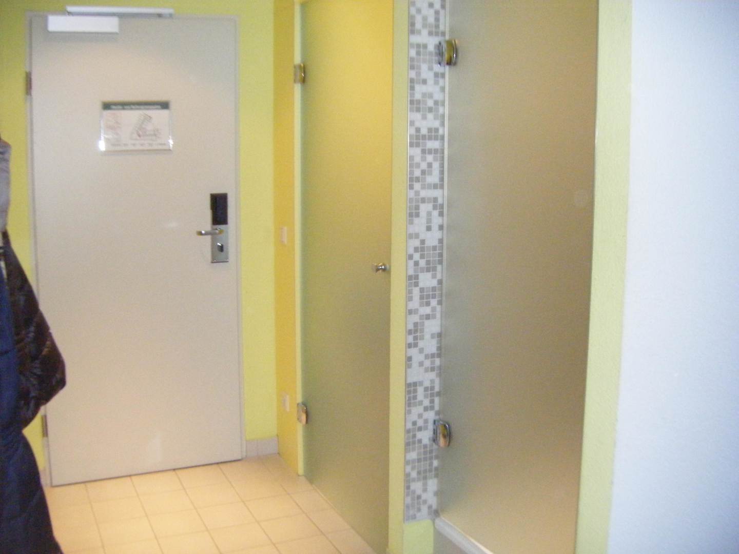 Eingangstür, rechts daneben 1.Tür WC, 2.Tür Dusche