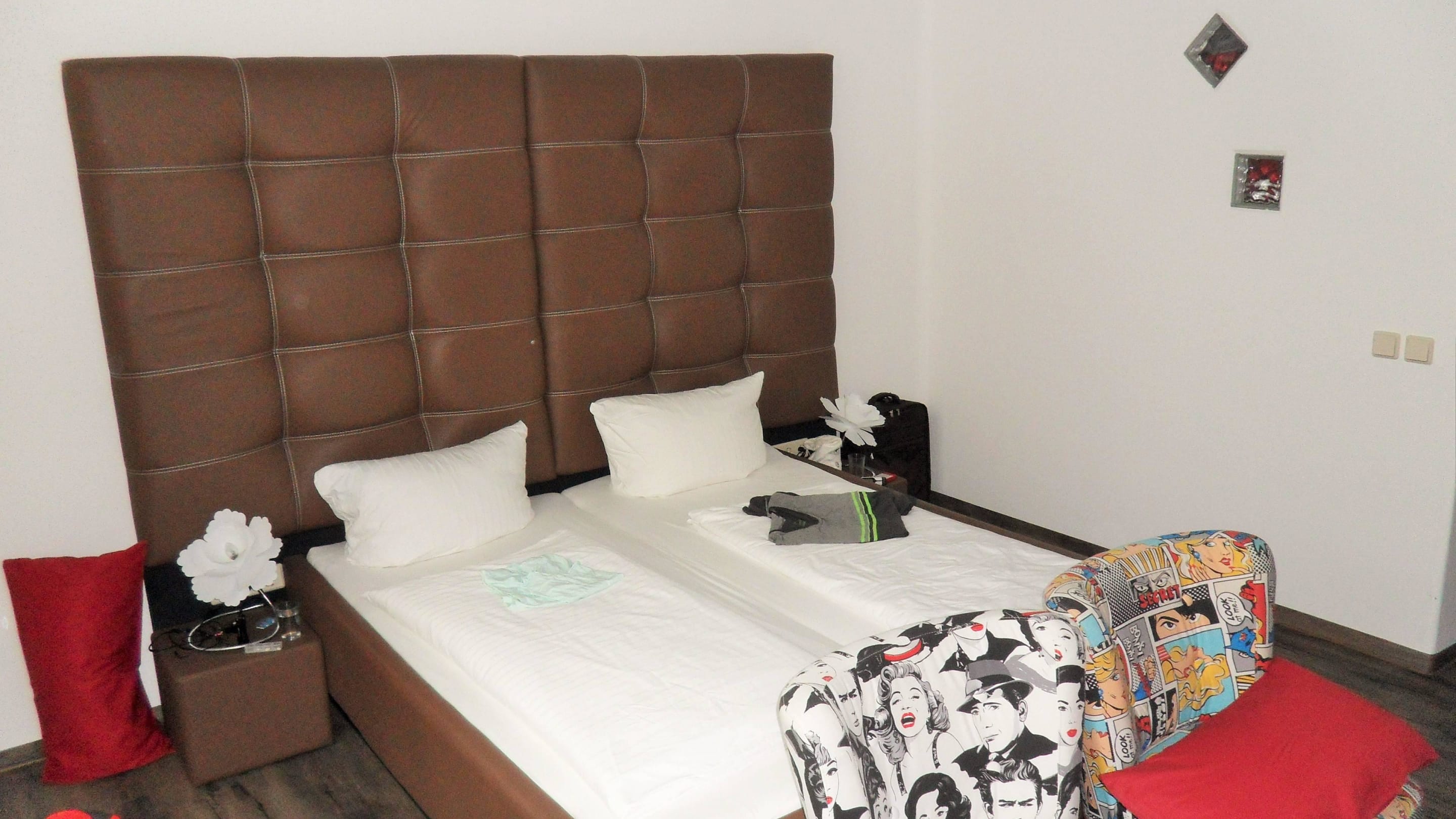 Doppelbett mit getrennten Matratzen und Sessel