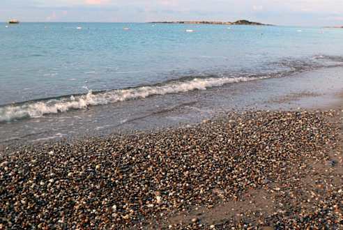 Zugang zum Meer über Kiessteine
