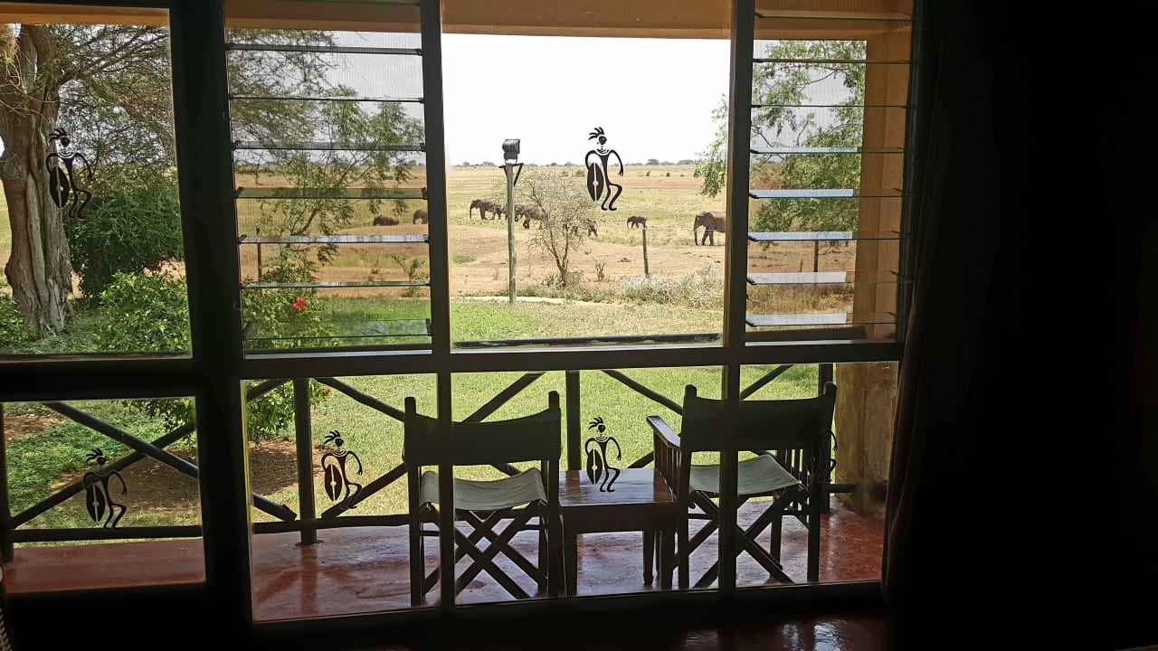 Aus dem Zimmer Blick auf noch mehr Elefanten