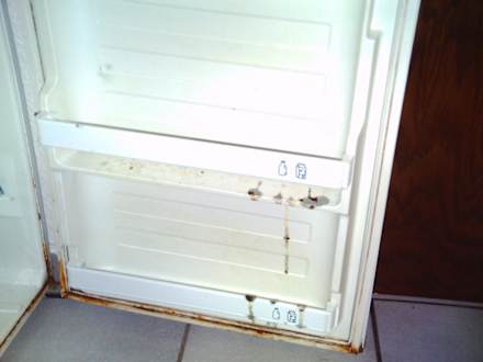Blick in den KühlschrankEin anderer Kühlschrank. Bisher war es nur Schimmelpilz. Noch länger gewartet und es hätte sich bewegt.