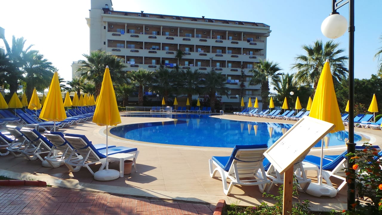 Pool mit Hotelgebäude