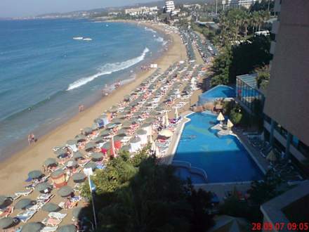Hotelstrand und PoolBlick von der Dachterrasse