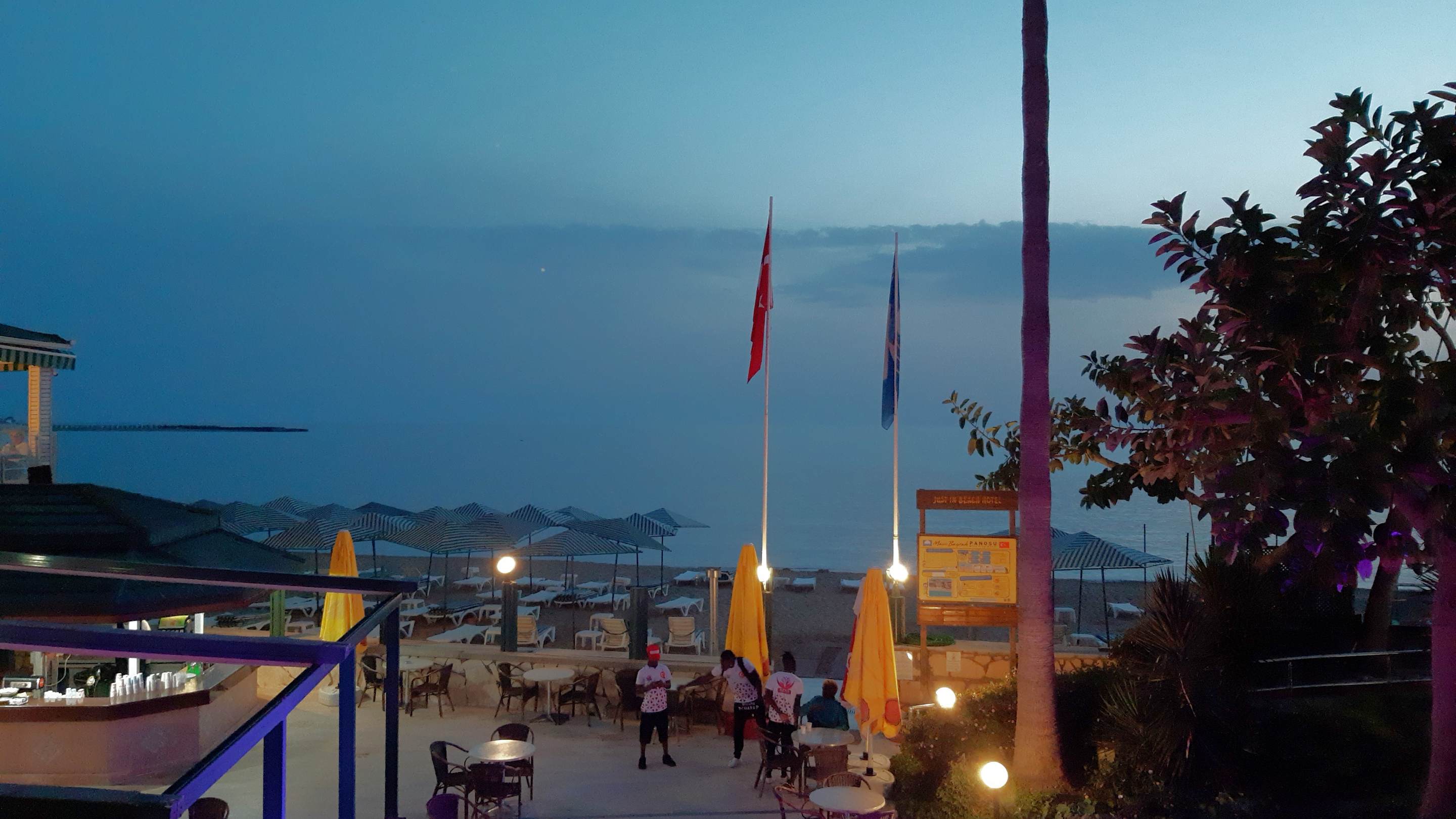 Blick vom Eingangsbereich über die Strandbar auf´s Meer