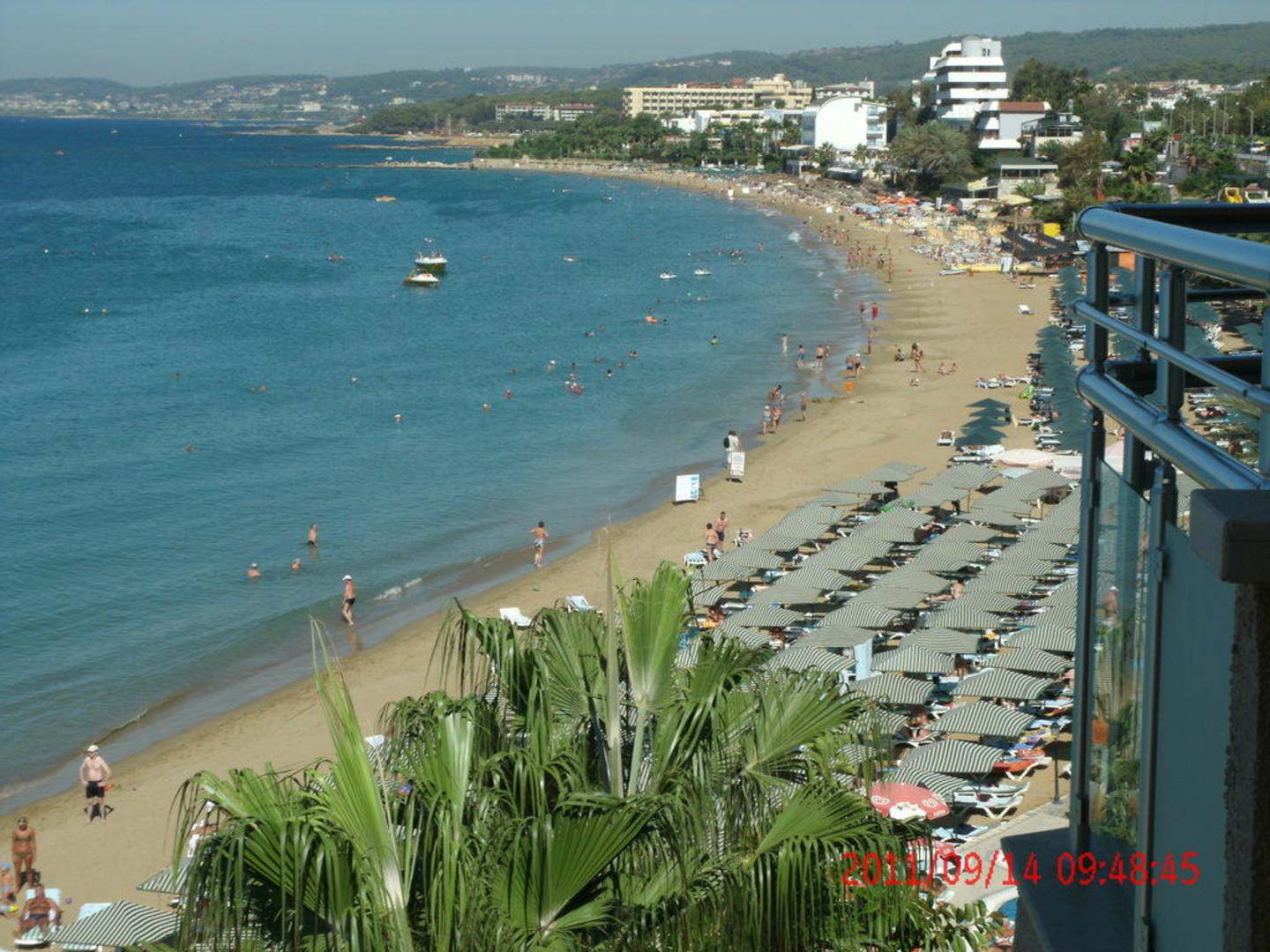 Aussicht vom Treppenhaus des B - Block´s über die ganze Bucht und dem Strand des Hotels.