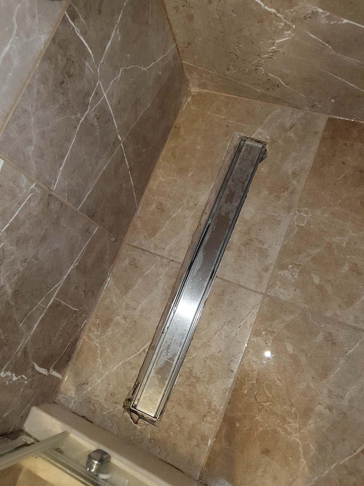 Die Fliesen sind abgebrochen und Scharfkantig, jeder kann sich daran schneiden