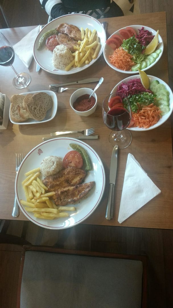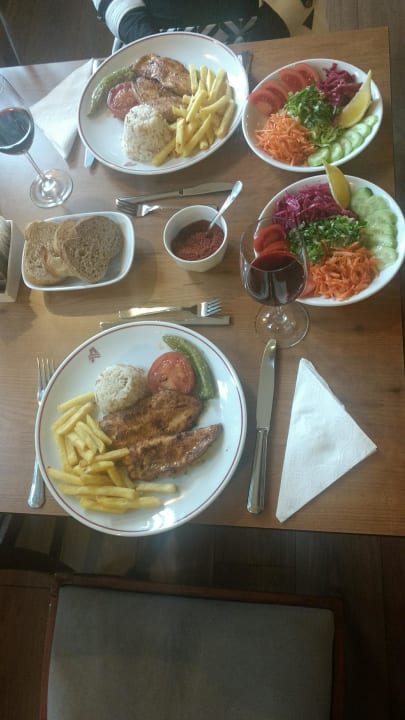 Ein Menü zum Abendessen, es gab da noch vorher einen Suppe und danach guten Nachtisch.