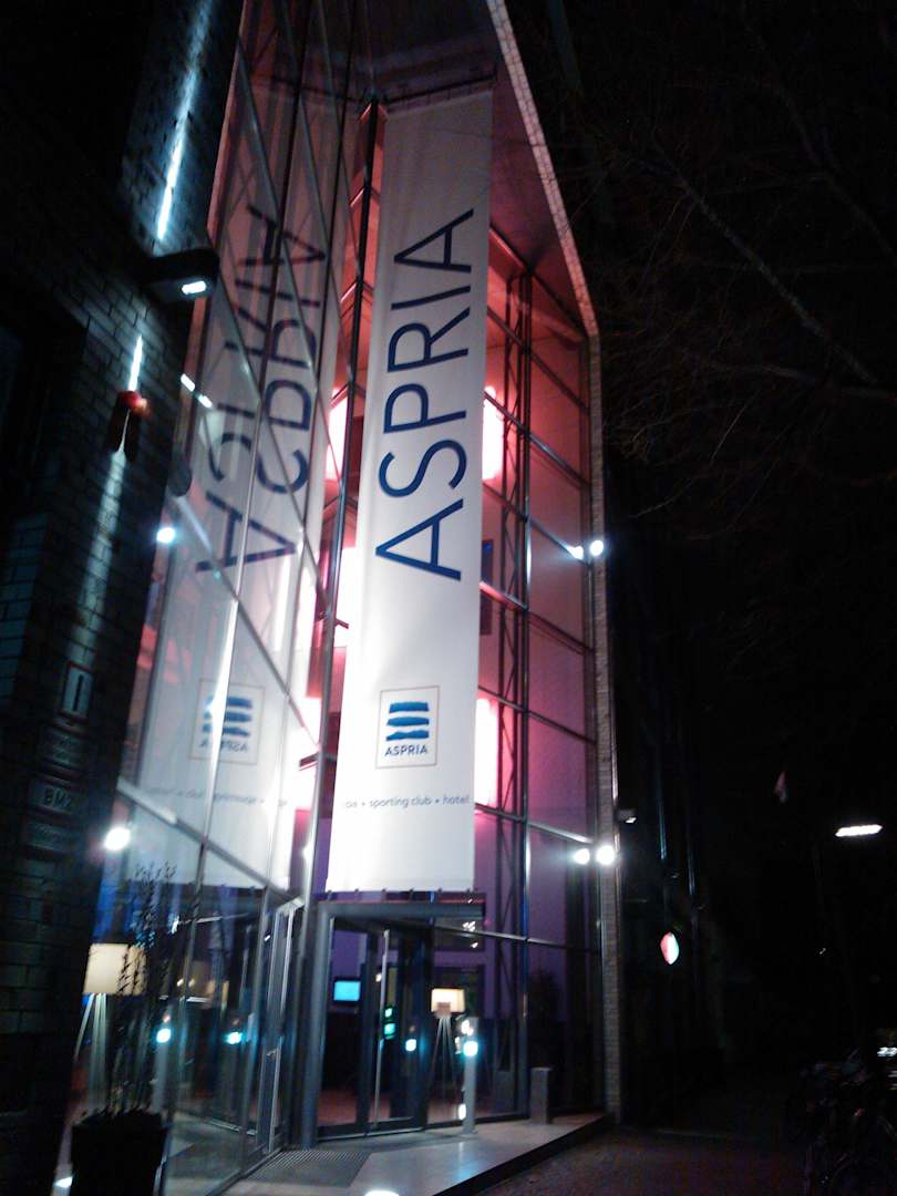 Schöne Beleuchtung des Hotels am Abend Aspria Berlin Ku'damm
