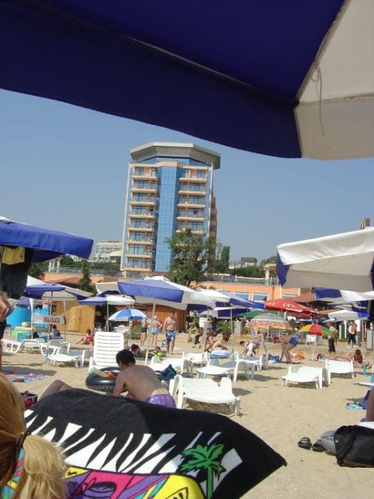 Der Blick vom Strand in Richtung Hotel Astera