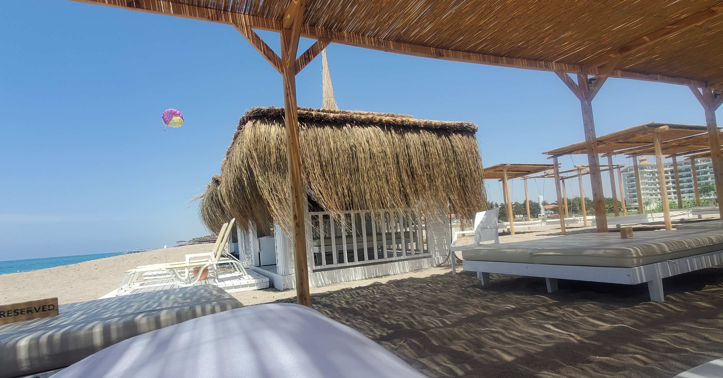 Strandbetten und privates Strandhaus