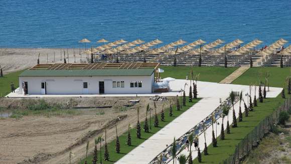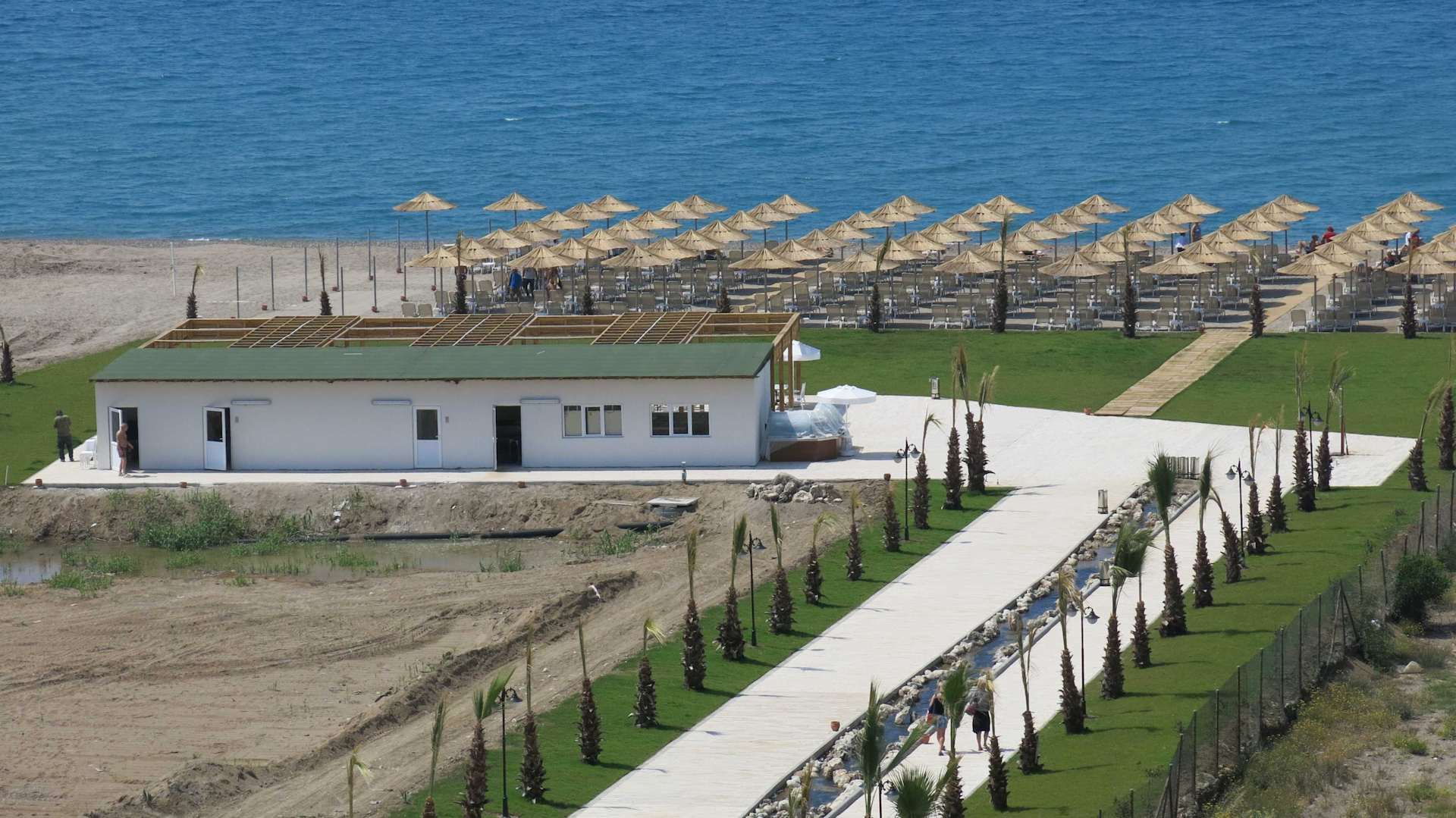 De strandbar en de ligzetels / parasols