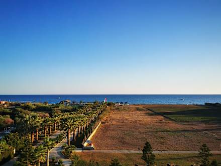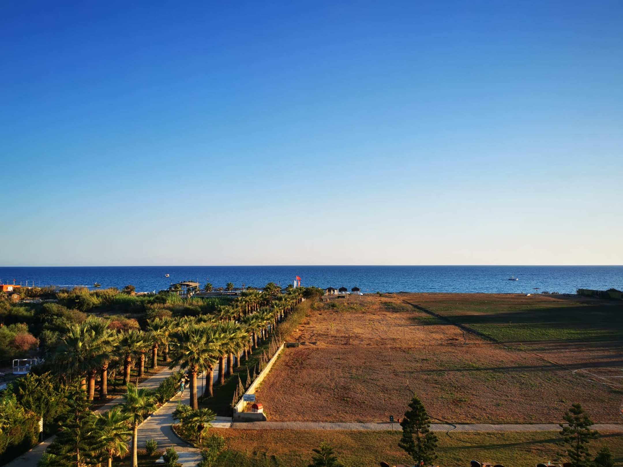 300 Meter Einöde welche zum Hotel gehört, vorher war anscheind Fußball und Tennisplatz vorhanden ist anscheinend verkümmert. Sieht halt nicht schön aus. Links der Weg entsprechend zum Strand.