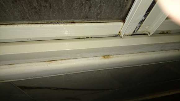 Zimmerverschmutztes und verschimmeltes Badezimmer
