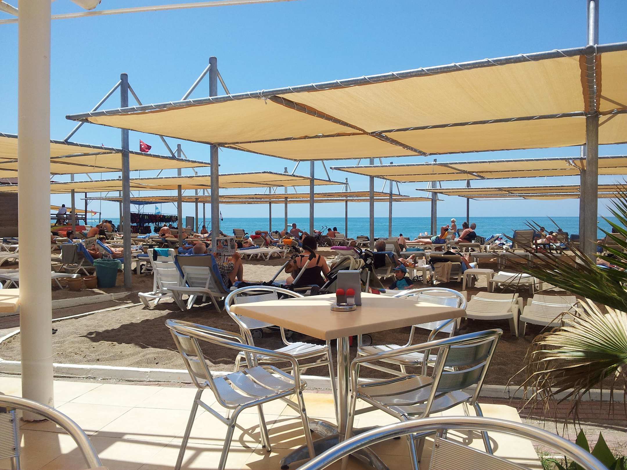 Kijk vanaf het terras naar het strand
