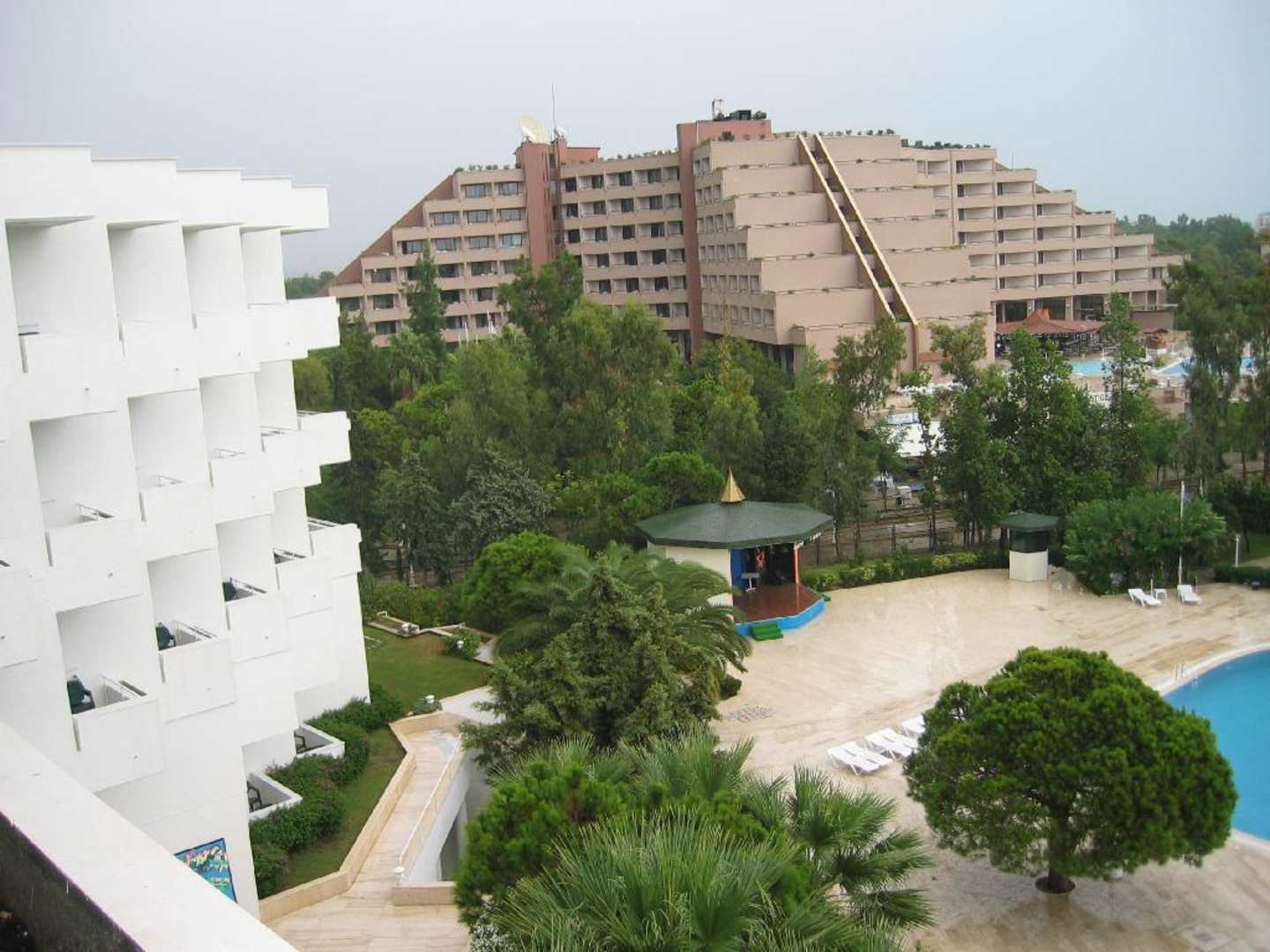 Blick aus dem Zimmer 321 zur linken Seite des Hotels auf dasTürkei Side Hotel Saray Regency